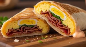 A6: Quick as a morning breeze! From frying bacon to scrambling eggs and assembling the wrap,you’re looking at about 10-15 minutes. Perfect for early risers or brunch enthusiasts craving something hearty yet speedy.