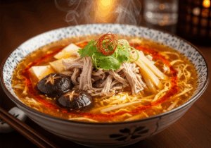 2. Make the broth: In a large pot, bring 4 cups of chicken or vegetable stock to a gentle boil. Add sliced mushrooms and bamboo shoots, simmering for 5 minutes until fragrant.